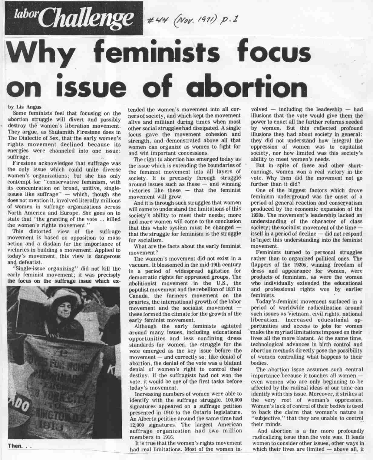 | #44 November: | Why feminists focus on issue of abortion 2nd page Grace MacInnis (NDP) flays Trudeau for hypocrisy on abortion |