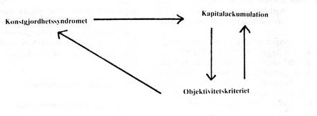 Makrobiotikens oförenlighet med kapitalismens organisationsform har sin grund i att makrobiotikens värden är absoluta (bruksvärden), medan kapitalismens värden nödvändigtvis är relativa, nämligen bytesvärden. Abstraktionen kapital är för makrobiotiken fullständigt ovidkommande. I sin praktik var mikro-makrofolket klart anti-förbrukare och därmed dåliga tjänare åt kapitalackumulationen. Gruppen var dock för liten för att direkt undertryckande skulle bli nödvändigt. (Man skall emellertid inte vara blind för att kapitalet efterhand har lyckats inrätta en särskilt ”hälsomarknad” åt dem). Därtill kom diverse försök att upprätta produktionskollektiv, och därmed förneka den privata äganderättens princip. Den mest betydelsefulla konflikten med det organisationsmässiga planet uppkom dock antagligen på omvägar. Biodynamikens teknologiska underlägsenhet yttrar sig nämligen däri, att marknadsmekanismen blir ett hinder. Man har istället försökt upprätta andra fördelningssystem, där varorna avsättes mot betalning till andra kollektiv i kraft av ideologisk gemenskap. Här är det alltså tal om en motverkande återmatningsslinga. (se fig. 4)