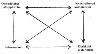 Min beskrivning av produktivkrafternas utveckling kan enligt de tidigare avsnitten sammanfattas som något helt annat än fortsatt höjning av vår förmåga till tillväxt. Produktivkrafternas utveckling måste vara en utveckling av en informationsteknologi i vid mening, utvecklingen av ett medvetande kännetecknat av ordens ömsesidighet och fältupplevelse, och slutligen av en dialektisk-materialistisk världsuppfattning. Sådana produktivkrafter har jag beskrivit som ekologiska produktivkrafter [40], därför att de kommer att tjäna till att bevara eller utvidga herraväldet över naturen, utan att slå den ekologiska balansen i stycken.